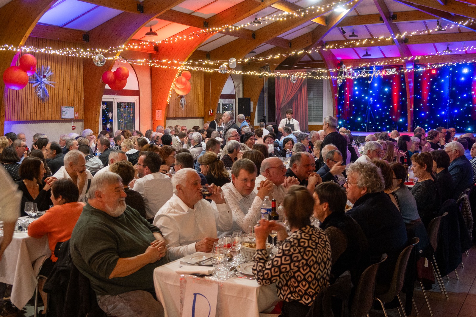 Aux douze coups de minuit, un immense cri de « Bonne Année ! » a retenti, et toute la salle s’est chaleureusement congratulée pour célébrer l’entrée dans la nouvelle année. La fête s’est ensuite poursuivie sur la piste de danse, animée par le DJ jusqu’à 4 heures du matin.