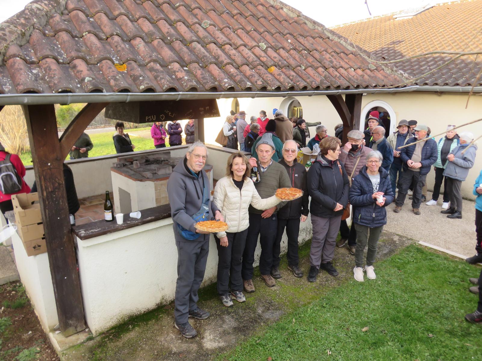 Après avoir fêté dignement les 25 ans d’existence de notre club de Randonnée en 2025, Les Montapattes ont organisé le 12 janvier 2026: la traditionnelle " rando Galette ", la 1860ème randonnée depuis la création de l'association. Réunis pour l'occasion, 62 randonneurs mais aussi fins gourmets piaffaient sur la place du village… Sous un timide soleil, le groupe, bien emmitouflé, s’est mis en marche sur les sentiers et bois autour de Le Montat, notre cher village. Le circuit de 10km avalé, les galettes et le cidre bu avec modération prirent la relève et réveillèrent les papilles. Au rendez-vous de la convivialité et des rires quelques têtes furent couronnées. La Présidente, dans ses vœux, a souhaité longue vie à notre club et à ses adhérents nous promettant moulte randonnées tant sportives que festives.